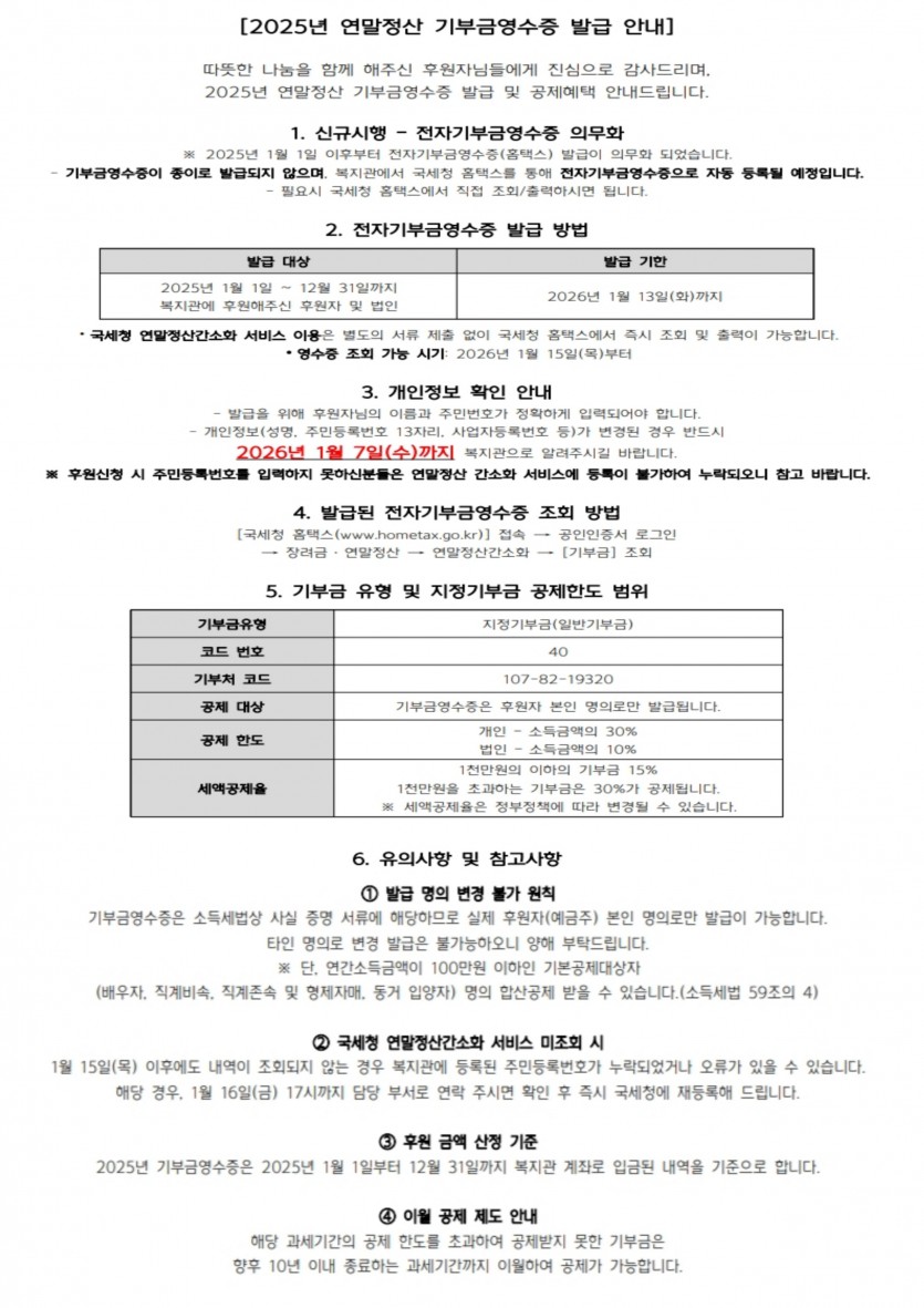 [공지] 2025년 연말정산 기부금영수증 발급 안내